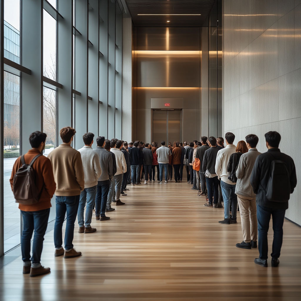 Генеральный менеджер всё никак не мог понять, зачем набиваться толпой в лифт, чтобы спуститься с минус первого на минус полуторный этаж, если достаточно пройти один лестничный пролёт?