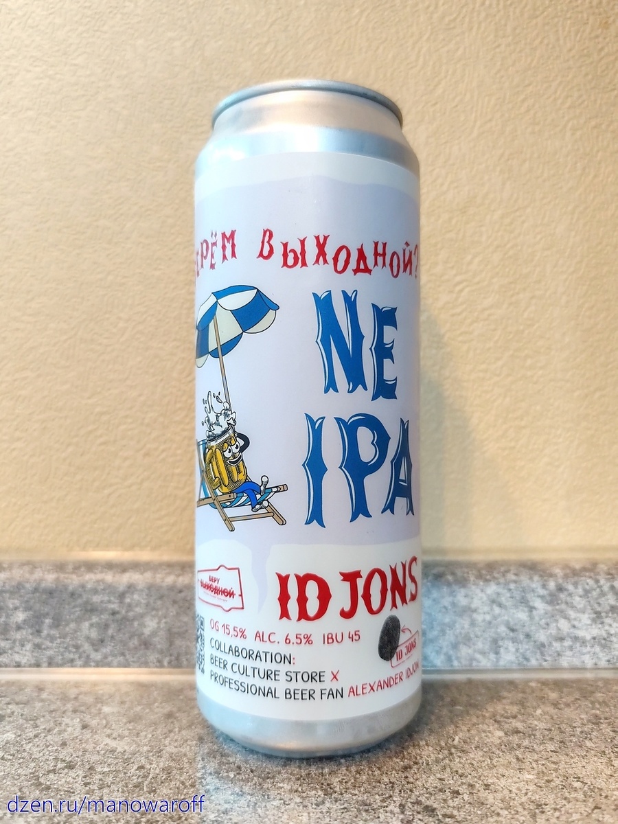 Как вы, наверное, догадались по заголовку, сегодня мы будем пробовать продукт совместного творчества Александра Иджона в виде пивоварни ID Jons и сети пивных магазинов "Беру выходной". А называется сегодняшнее пиво "Берем выходной?". Судьба у данного пиваса достаточно сложная: Коллаборация с магазинами «Беру выходной» была задумана ещё зимой. После длительного обсуждения выбрали стиль – NEIPA. Стиль в производстве сложный, но интересный. Если на этикетке написано «ID Jons Берёт выходной», то в реальности всё было не так. Поработать пришлось много и всё шло не по плану. Первую варку пришлось слить, т.к. возникли проблемы на этапе сухого охмеления. Контрольные образцы второй варки были отправлены в Москву, Александру Иджону с помощью компании СДЭК и… Правильно – именно в этот момент СДЭК «лёг». Посылка «зависла». Второй пробник, отправленный другой транспортной компании, просто потерялся. В итоге, Александр сам поехал в Пензу, где провёл два сравнительных слепых теста и только после этог