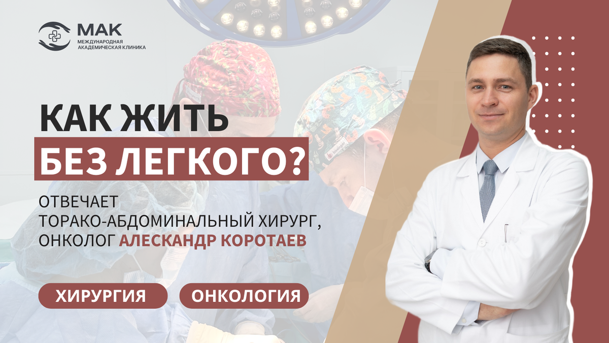 «Доктор, как же я буду жить с одним легким? Этот вопрос я часто слышу от пациентов, которым планируется выполнить пневмонэктомию – операцию по удалению легкого», – рассказывает главный врач «МАК», торако-абдоминальный хирург, онколог Александр Коротаев. «Такое вмешательство обычно необходимо для лечения злокачественных опухолей, находящихся в центральной части легкого или главном бронхе, а также при значительном поражении тканей органа. Конечно, нам, торакальным хирургам, всегда хочется обойтись наиболее щадящей операцией, удалить только пораженную часть легкого. Но иногда, чтобы полностью убрать злокачественный процесс, объективно нужно более агрессивное вмешательство». «Вовсе нет. Естественно, после пневмонэктомии физические возможности будут в той или иной степени ограниченными. Можно заметить некоторые изменения в своем состоянии: быстрее возникает усталость, может появиться одышка после интенсивных физических нагрузок. Но это не фатальные изменения. Оставшееся легкое не сможет пол