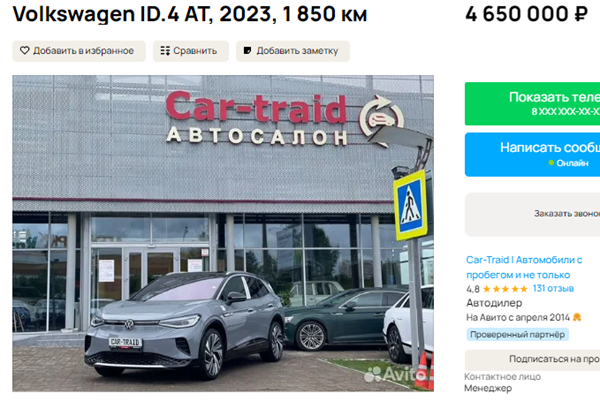 Этот ID.4 - 2023 года выпуска, с пробегом 1850 км. и батареей на 85 кВтч.