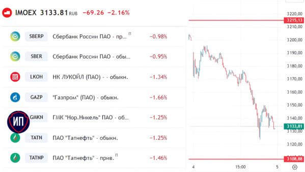 Индекс Московской биржи состоит из акций 50 компаний, то есть основной бенчмарк всей страны зависит от относительно небольшого количества эмитентов. Фактически компаний немного меньше, ведь по ряду эмитентов учитываются как обыкновенные, так и привилегированные акции. Мы с вами помним, что каждая бумага имеет определённый вес в индексе. Получается, что 53,1% доли индекса приходится лишь на первую пятерку компаний: 1. Сбербанк ао+ап - 15,8% 2. Лукойл - 14,8% 3. Газпром - 10,1% 4. Татнефть ао+ап - 7,9% 5. Норникель - 4,5%. И если акции этих пяти компаний будут находиться в разнонаправленной динамике, то роста индекса, зачастую, не стоит ждать. А вот если все компании из "великолепной пятерки" покажут отрицательную динамику, то и весь фондовый рынок уйдет в прострацию. Наглядный пример - динамика индекса Московской биржи за 4 июля, который скорректировался на 📉-2,16% до 3 133,81 пункта. Еще больше полезной информации по своему опыту в инвестициях, фондовому рынку и регулярных покупках в