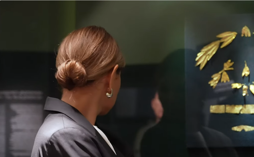 Выложено в разных местах уже три сюжета по теме. Первый - в официальном аккаунте офиса президента (какого-такого президента, интересно). Зрителей там немного. Комментарии почему-то отключены. Текст: "Выставка " Сокровища Крыма. Возвращение " будет представлена в Национальном музее истории Украины до окончательной деоккупации Крыма. Затем коллекцию планируют переместить на территорию полуострова". Играет пафосная музыка. Диктор читает не менее пафосным голосом: "Столетиями враг крадет наше наследие. Мы продолжаем давать отпор. Настало время, мы возвращаем свое. "Сокровища Крыма. Возвращение" - коллекция из четырех крымских музеев, являющаяся частью культурного наследия Украины". ... "Это мощная победа в борьбе за культурное наследие Украины, свидетельство нашей тысячелетней истории, которая ... Мы возвращаем не только часть своей культуры, мы возвращаем справедливость..." Появляется первая леди в сопровождении Кулебы, прочих чиновников и сотрудников национального музея. И произносит р