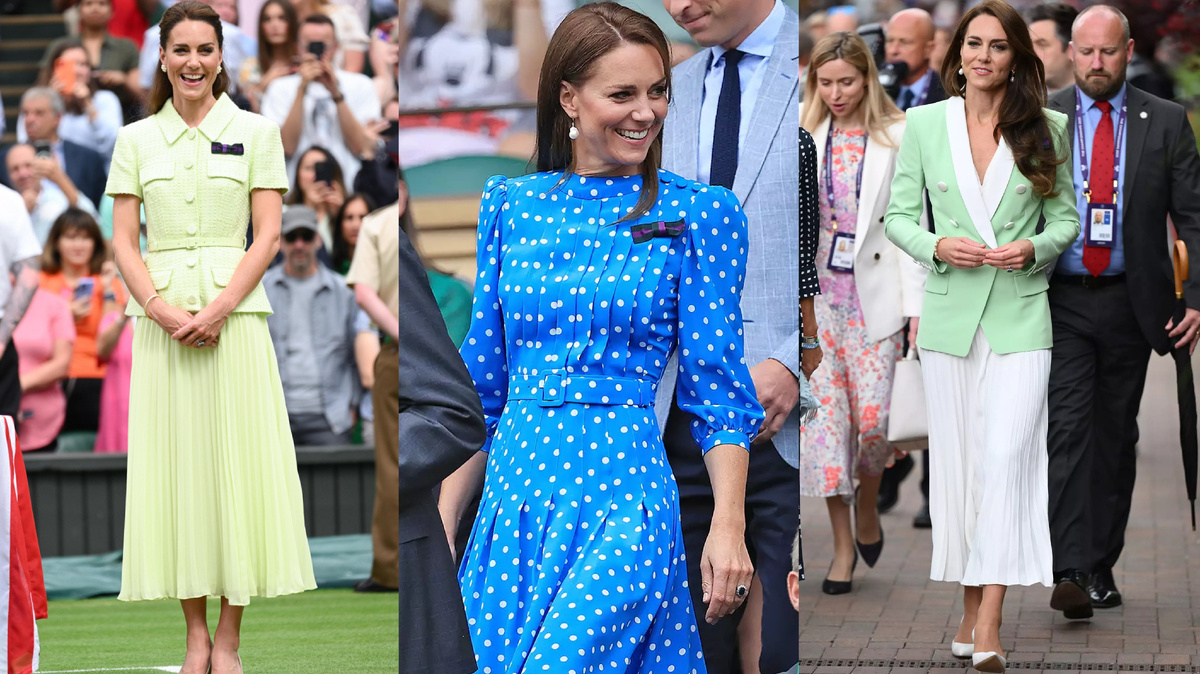 Хотя большинство нарядов, которые Кейт надевает на Уимблдон, однотонные, она иногда экспериментирует с узорами, как, например, в 2022 году, когда на ней было сине-белое платье в горошек от Alessandra Rich.