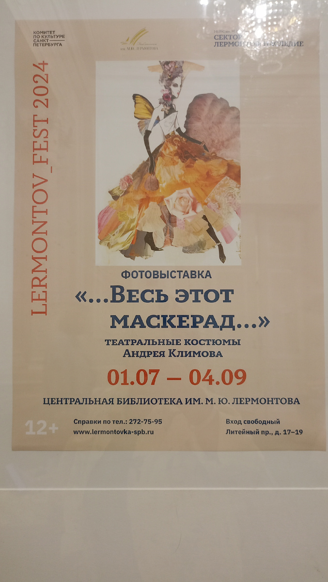 Чудесный был концерт. В любимой библиотеке им. М Ю. Лермонтова. Множество раз писала про эту библиотеку и про все мероприятия, на которых там была. Это замечательное место, где бесплатно можно получить незабываемые эмоции. Сам Белый зал с белым роялем каждый раз у меня вызывает в душе трепет. Настолько он красив. Именно в нëм проходят концерты. Каждый раз , когда я бываю в библиотеке, вижу там выставки. Они меняются. В этот раз действуют сразу четыре На стенах зала висят фотографии костюмов Андрея Климова. Я все посмотрела. Вот часть из них. Перед концертом я всегда все выставки рассматриваю и делаю фотографии. Ну и теперь о концерте. Ходили мы втроëм. И всем нам понравилось! Артисты великолепно выступали. Выглядели тоже великолепно. Это так приятно, когда всë сочетается. Исполнение, образы, обстановка! Я всегда стараюсь там сесть поближе. Получается видеть все эмоции исполнителей. Это очень захватывает! В этот раз повезло на первом ряду сидеть!