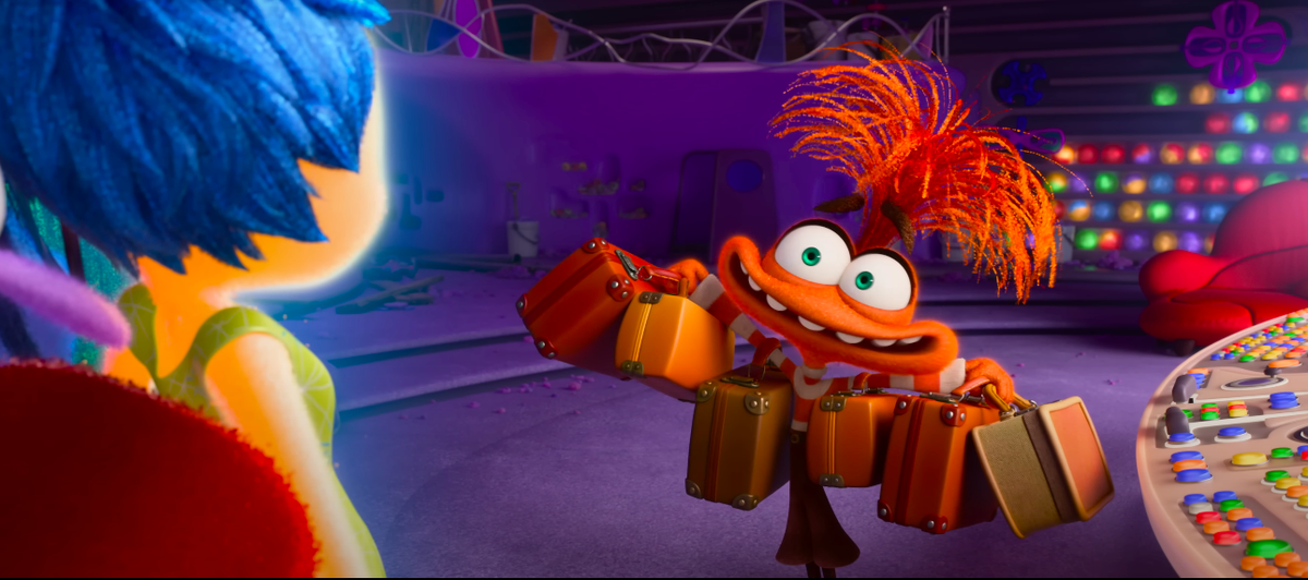 В “Головоломке 2” есть сцена, где Тревога полностью захватывает пульт управления Райли. Она захватывает всё пространство головного отдела, самосознание, представление об окружающем мире, и кажется, что она способна захватить весь внутренний мир девочки. Именно здесь нам наглядно, но при этом метафорично показывают то, как состояние тревоги может варьироваться по интенсивности и изменяться по характеру воздействия.