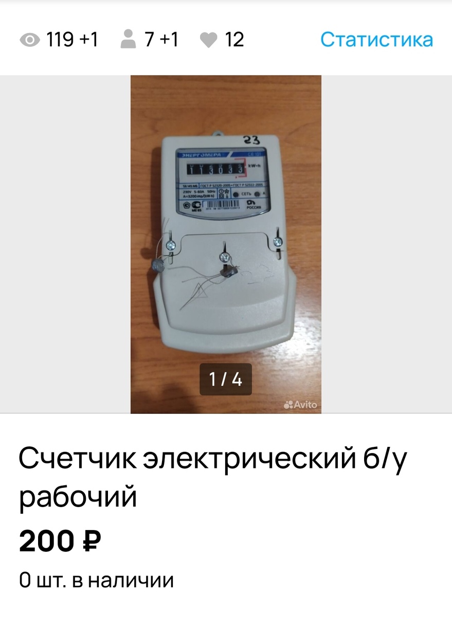 Июньский заказ, июльский доход! Продался счётчик электрический, бу, в рабочем состоянии без документов. Год назад в нашем доме централизовано меняли всем электрические счётчики, а старые, которые совсем не старые, установленные 8 лет назад, сняли и положили у дверей квартир. Я свой забрала и, конечно, как хозяюшка, прибрала в шкаф. Он там прекрасно лежал, пока в рекомендациях Авито я не увидела бу счётчик, проданный за 300 рублей. А мой чем хуже? - подумала я и выставила тоже за 300. Объявление крутилось, люди писали, с кем-то не совпадала по времени , кто-то хотел с документами. Начала снижать цену и на третьем круге, на цене 200 рублей его заказали. Уехал Авито доставкой через Пятерочку. Покупатель доволен, получил в целости, я довольна, получила деньги. Отличная продажа! P.S. А ведь могла выкинуть.