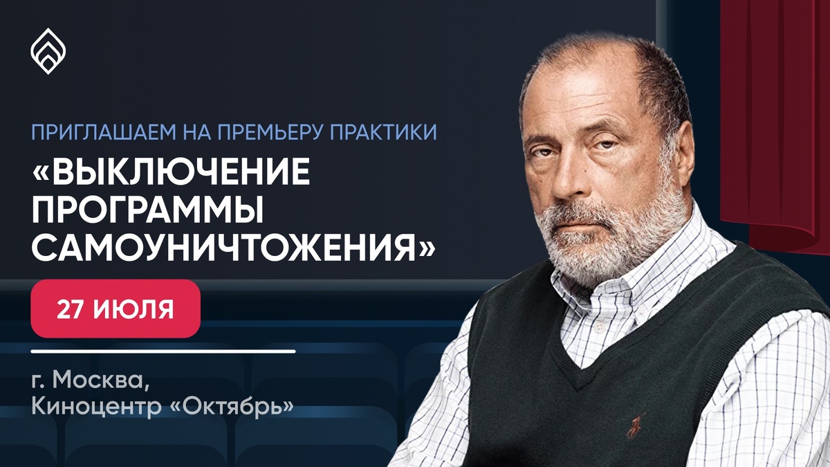 Приглашаем вас принять участие в уникальной живой встрече с командой С.Н. Лазарева на премьере практики “Выключение программы самоуничтожения”, которая состоится 27 июля в Москве в киноцентре “Октябрь”! Новая практика поможет преобразить ваш внутренний мир, освободиться из плена неудач и сделать шаг навстречу жизни, наполненной безусловной любовью, радостью и смыслом. Вас ждет вступительное слово от Сергея Николаевича и сама медитативная практика, в ходе которой вы совершите путешествие в глубины своих чувств и через их изменение сможете переписать свою жизненную историю. Помимо практики вас также ждут ответы на вопросы читателей, записанные Сергеем Николаевичем, выставка картин, а также знакомство и живое общение с единомышленниками! Программа мероприятия: Адрес проведения мероприятия: г. Москва, ул. Новый Арбат, 24 (метро Смоленская), киноцентр “Октябрь”. Станьте участником живой встречи и одним из первых, для кого выйдет в свет новая практика. Количество мест ограничено. Приходите,
