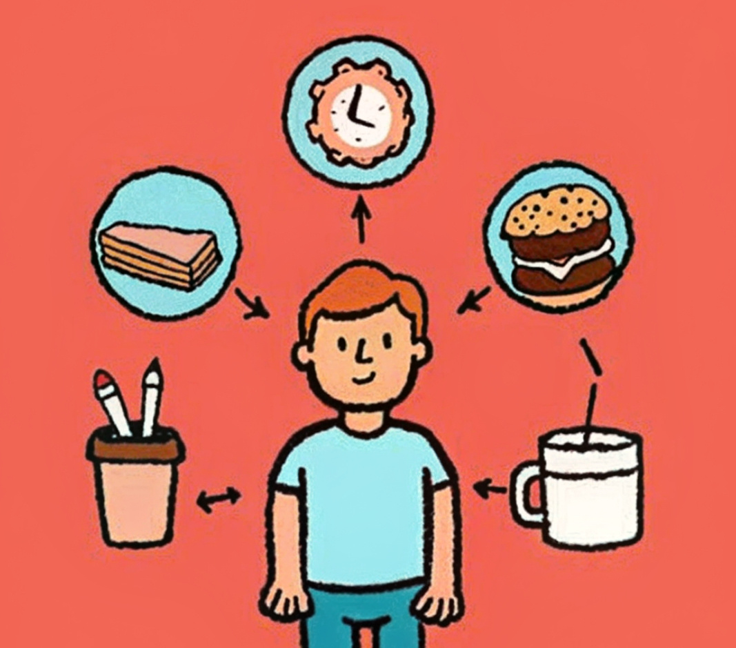 Я сам часто попадаюсь на уловку, что я силён, что я всё смогу и сразу начинаю внедрять сложную привычку или комплекс привычек. Возьмём для примера питание. Хочу убрать из свой жизни сахар в составе любых продуктов. И тут же себе говорю: «Хорошо бы и пшеничную муку убрать. А еще бы лимонады не пить. И колбасные изделия бы исключить. Чипсы бы тоже не кушать. И вот у тебя куча целей в рамках привычек и надо за каждой следить. О каждой себе напоминать. И за сахаром в составе следить, и за мукой, и колбасу не брать, а еще задачи по работе и физкультура еще, и цифровая гигиена.