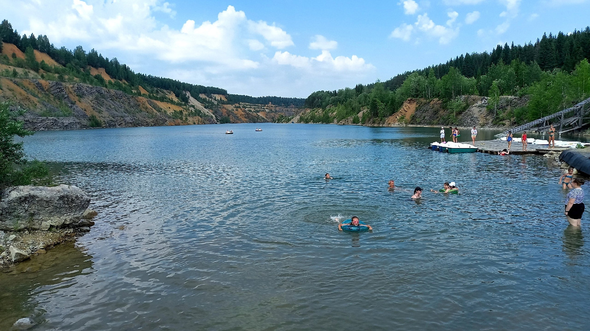 3.07.24 - день поездок! Сегодня мы едем на озера Александровска, где будем купаться! Ура! Нас замучили комары и жара! И все очень хотели искупаться! В этот день мы еще были дежурными по столовой. Пройдя мастер-классы мы собрали все сумки, взяли очень много воды, надели купальники и с предвкушением поехали на экскурсию. Ивакинский карьер. О! Эта вылазка была бы очень интересна мальчишкам. На самом деле так называется поселок, но именно по имени карьера. В 1943 году был введен в эксплуатацию извястниковый карьер. Рабочими карьера были репрессированные, сосланые на зону осужденные. Прошло много лет - зоны уже нет, но все так же добывается известняк, камень для строительства. И все также ездят по пыльным дорогами БЕЛАЗы. Кто не знает, это самые большие самосвалы! Так вот до сих пор карьер используется, разрабатывается и как сказал директор, что полезных ископаемых хватит еще на 30 лет. Далее мы поехали в Луньевку, полуразрушенный поселок и там почти никто не живет. Поселок возник в 1853 г