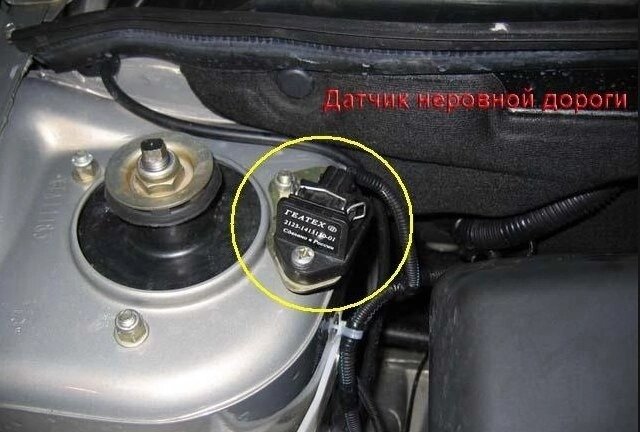Датчик неровной дороги (ДНД). Устанавливается: На автомобили семейства ВАЗ-2110 – в моторном отсеке на левой стойке передней подвески. На автомобили семейства ВАЗ-2108 – в моторном отсеке на правой стойке передней подвески; На автомобили ВАЗ-21214 – на шпильке крепления кронштейна электродвигателя стеклоочистителя... ДНД предназначен для измерения колебаний кузова автомобиля. Принц ип действия датчика основан на пьезоэффекте. Контроллер подает на ДНД опороное напряжение 5 В. С выхода ДНД на контроллер подается сигнал напряжением 2,5 В. Движение автомобиля по неровной дороге вызывает изменение этого сигнала. Контроллер использует показания ДНД при диагностике пропусков зажигания. При движении автомобиля по неровной дороге колебания кузова вызывают изменения угловой скорости вращения коленвала. Данные колебания частоты вращения коленвала похожи на колебания, возникающие прир пропусках зажигания. Для исключения появления ложной ошибки контроллер при превышении сигнала ДНД определе