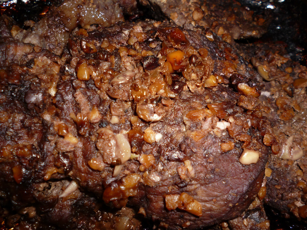 Говядина, запечённая в фольге с чесноком и грецким орехом