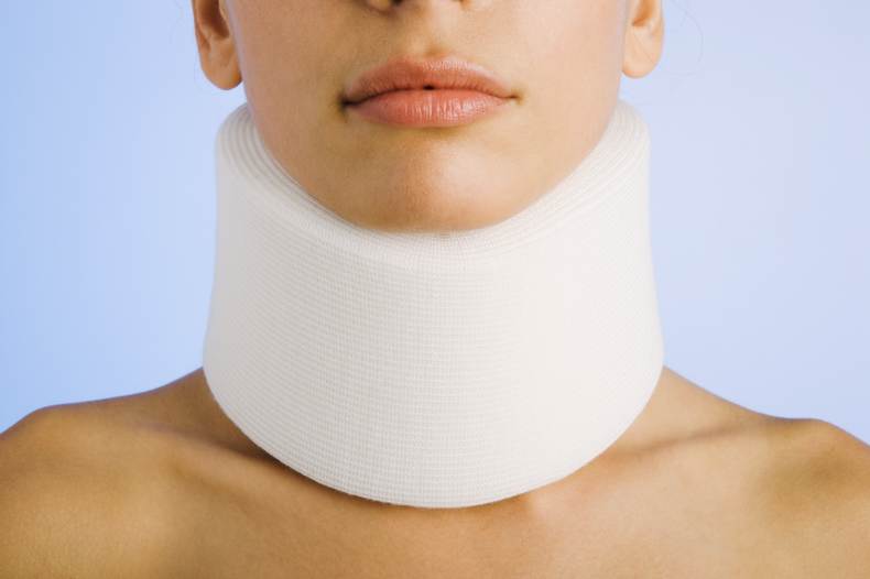 - Хлыстовая травма. Чаще всего диагностируется у пациентов, перенесших ДТП, и возникает при резком, сильном сгибании и разгибании шеи. Автомобильная авария, падения или другие обстоятельства также приводят травмам и необходимости использовать воротник Шанца для защиты шеи и предотвращения еще большей травматизации поврежденной зоны;