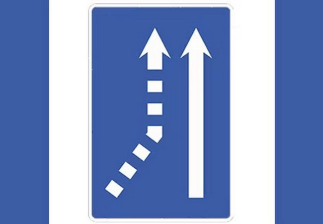 Знак s-70 показывает объединение полос движения. Он устанавливается, когда две или более полосы объединяются в одну. s-70 применяется для перехода на одну полосу, s-71 для двух полос, а s-72 для трех и более полос.