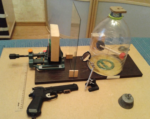 В данном случае доказательство Среды было получено ранее в расчётах и экспериментах. Помимо научно-технического задела важную роль в эксперименте играл выбор имитатора падающего тела. Требовалось создать полевой «всплеск», достаточный, чтобы вызванное им возмущение Среды обнаружилось на фоне помех. В домашней лаборатории выбор весьма ограничен, зато под рукой оказался пневматический пистолет МР-651К, предназначенный для стендовой стрельбы. Характеристики этого устройства приводятся в справочниках: