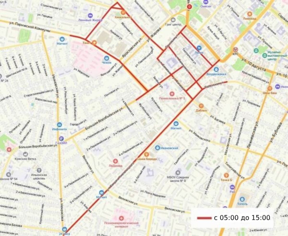 - по улице Мархлевского: на участке от улицы Кузнецова до Парижской Коммуны