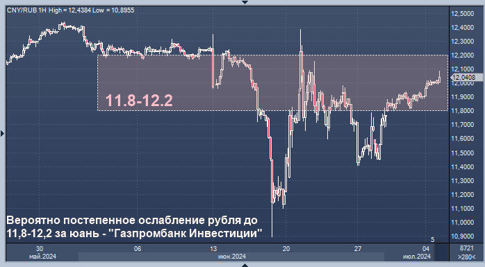 Вероятно постепенное ослабление рубля до 11,8-12,2 за юань - "Газпромбанк Инвестиции" Курс доллара к рублю расчётный, фьючерс, вечный фьючерс и межбанк. Курс евро к рублю расчётный, фьючерс, вечный фьючерс и межбанк. Курс юаня к рублю биржевой, фьючерс, вечный фьючерс и межбанк. Вероятно постепенное ослабление рубля до 11,8-12,2 за юань и 87,5-90,5 за доллар, полагают аналитики сервиса "Газпромбанк Инвестиции". "После резкого укрепления рубля в середине июня 2024 года курс вновь начал слабеть к основным валютам. Истек очередной налоговый период: в предыдущие дни экспортеры активно продавали валютную выручку, чтобы обеспечить расчет с бюджетом в рублях. Дополнительное давление на рубль оказывает сокращение Банком России объемов продажи иностранной валюты во второй половине года. С нашей точки зрения, фаза переформатирования курсообразования близка к своему завершению. Удлинение сроков репатриации валютной выручки наравне со снижением норматива ее обязательной продажи экспортерами с 80 д
