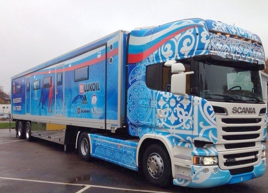 – Мы находимся в большой фуре, – рассказывает Пётр Трифонов, – которая ездит с нами везде – это наш второй дом. В 2013 году нам его изготовили по спецзаказу в Швеции к Олимпиаде-2014 в Сочи. Уже 10 лет он нам служит – никогда не подводил. Мы за ним ухаживаем, любим его, бережём, моем – он у нас всегда чистый и опрятный. Видите, что и атмосфера у нас здесь очень дружелюбная… А чуть поодаль стоят 5 маленьких автобусов, в которых мы непосредственно перевозим лыжи и багаж спортсменов, который не поместился в самолёте…