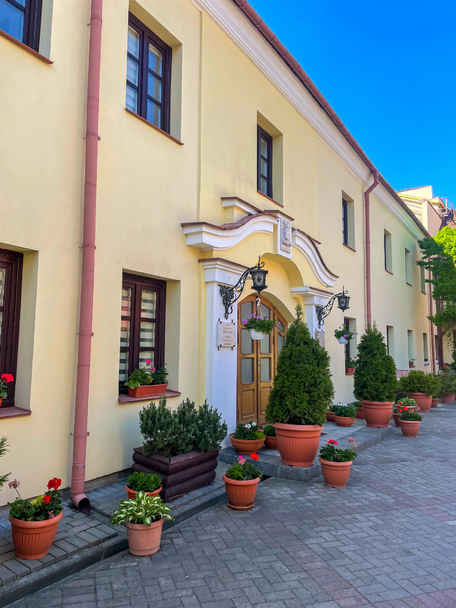✔️дворик Иезуитского коллегиума- фонтан со статуей, цветы- очень красиво 😍 Только немного портят впечатление припаркованные здесь автомобили.
