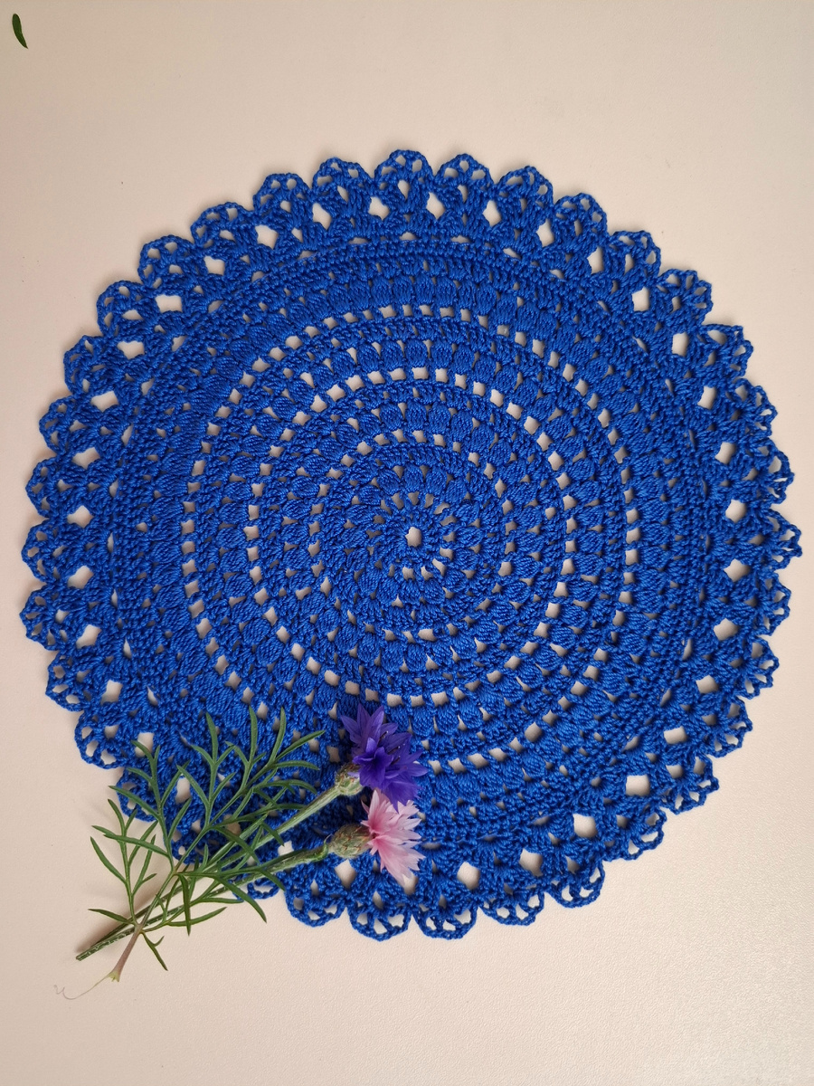 Приветствую читающих. Сегодня был на удивление длинный день. Нет, количество часов в сутки не увеличилось, просто было две причины заниматься делами поочередно и попеременно. Вчера вечером выбирала нитки и схему, очень захотелось взять в руки крючок. Начиталась видите ли на Дзене и решилась. На новогодние подарки вязала салфетку из синих ниток по желанию одаряемого. Перебрала вчера все цвета радуги и остановилась на этом ярко синем, может потому, что и самой мне этот цвет еще тогда приглянулся. Такого цвета салфетки у меня еще нет, но есть куда его приспособить, но надо еще одну вязать. Идея парная. Стала пользоваться салфетками украшая кухонный стол, при этом они накрыты прозрачной клеенкой, они под ней не грязнятся и не болтаются по столу. А стол красивый. Цвета точно не подбирала под триколор, так вышло. Это фото из интернета, на него я и запала. Просто и красиво. Схема, может кому пригодится. Вязала как всегда Анна 16, крючок 1,5. Незаметно перешла на более тонкий крючок,
