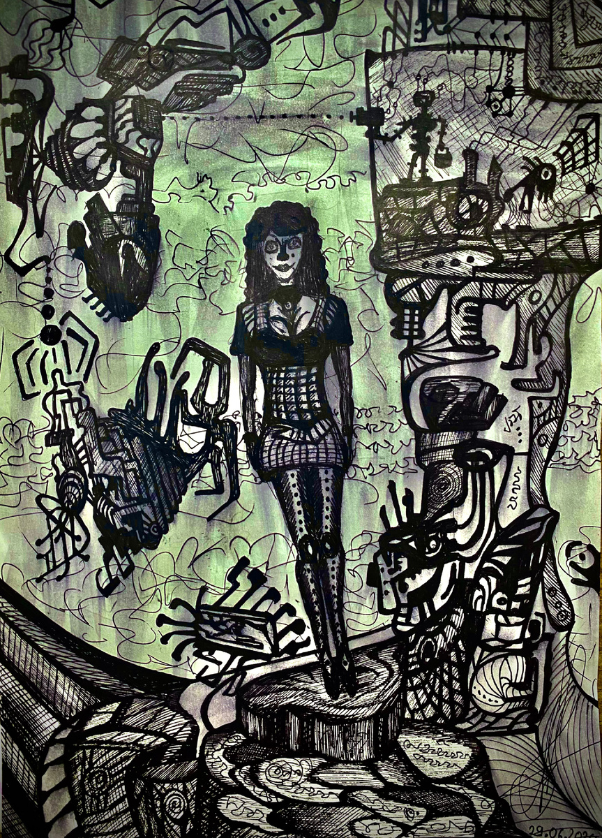 Эта удивительная картина представляет собой вихрь ярких красок и форм, где загадочная девушка, похожая на героиню сказки, стоит посреди этого невообразимого мира. Ее глаза полны тайны и удивления, будто она исследует не только удивительное окружающее ее пространство, но и сама себя. Робот, выпускающий пули, добавляет нотку напряжения и опасности в эту захватывающую картину. Этот произведение искусства заставляет зрителя задуматься о взаимосвязи чуда и технологий, о границах между мечтой и реальностью.