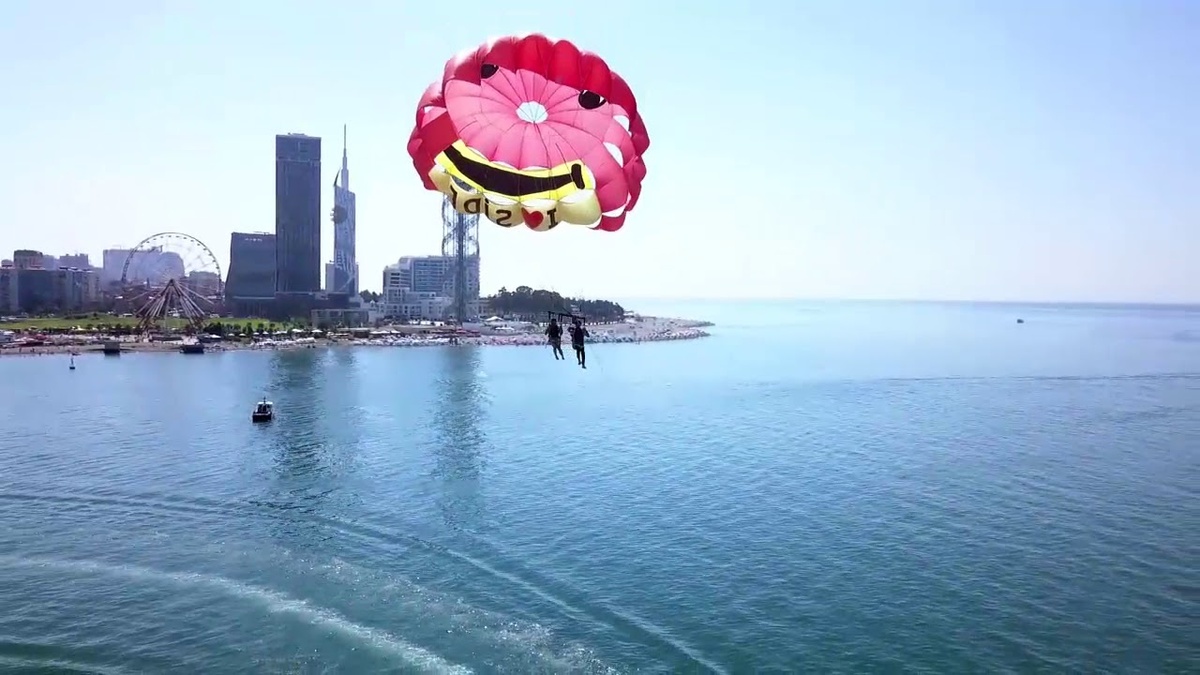 Пляжный отдых может быть активным – доказательством тому являются всевозможные пляжные развлечения, которые предлагаются заскучавшим на жаре туристам прямо на берегу моря. Это и прогулки на бананах, и поездки на водных байках, и парасейлинг, о котором и пойдет речь. Скажу сразу – лично я вообще не любитель всех этих экстремальных развлечений с минимальными гарантиями безопасности вроде спасательного жилета. Те же бананы, которые так были популярны в Сочи, когда мы отдыхали там с семьей в детстве – для меня они казались какими-то орудиями пыток. В Батуми на пляже тоже предлагается большое количество подобных развлечений. Для пары из Кувейта такой отдых закончился трагедией. Парасейлинг – это экстремальный вид спорта. Парашют, в котором может находиться один или несколько человек, крепится к катеру. Катер начинает движение, и люди взмывают в небо – длина тросса составляет около 120 метров, высота полета не должна превышать 60 метров. Для парасейлинга требуется опытная команда минимум из