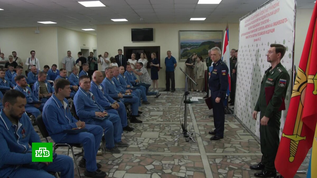 [ Смотреть видео на сайте НТВ ] Участникам специальной военной операции, получившим ранения во время службы, вручили государственные награды в госпитале, где они проходят реабилитацию. В филиале Центрального военного клинического госпиталя имени Вишневского участникам спецоперации вручили государственные награды, очередные воинские звания и жилищные документы с назначениями к новым местам службы. А тем, кто за время лечения в госпитале прошел курс обучения по дополнительному профобразованию, были выданы соответствующие документы. В филиале госпиталя открыт реабилитационно-образовательный центр для военнослужащих. Заместитель министра обороны Анна Цивилёва проинспектировала создаваемую на территории инфраструктуру и ход строительства новых профильных объектов. [ Смотреть видео на сайте НТВ ]