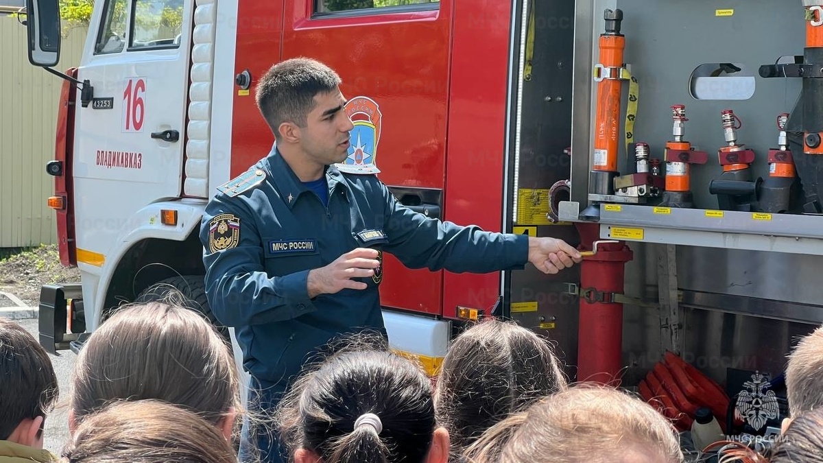 Дети, отдыхающие в пришкольных лагерях часто становятся гостями пожарных частей Главного управления МЧС России по Республике Северная Осетия-Алания. В рамках таких мероприятий маленьких гостей знакомят с «пожарной кухней»: показывают служебные помещения, пункт связи, гараж, и самое главное – автопарк и пожарно-техническое вооружение. В роли экскурсоводов выступают пожарные, находящиеся на боевом дежурстве, и с удовольствием делятся своими знаниями и любовью к профессии с ребятами. Конечно, наибольшее внимание не только мальчиков, но и девочек привлекают те самые большие красные машины. Откуда берется вода? Как регулируется напор? Какова мощность автомобиля? На все эти вопросы обстоятельно и подробно отвечают огнеборцы, как и чем вооружен пожарный автомобиль для борьбы с огненной стихией. Любознательные детишки уточняют все детали процесса тушения огня, а также стараются узнать, чем знаменита профессия «пожарный-спасатель» и где на нее можно обучиться. Всем желающим пожарные дают пример