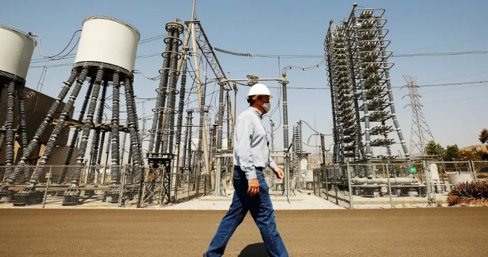 Мужчина идет по территории электростанции в 2021 году после того, как лесные пожары в Орегоне поставили под угрозу электроснабжение в Калифорнии Al Seib/Getty Images
