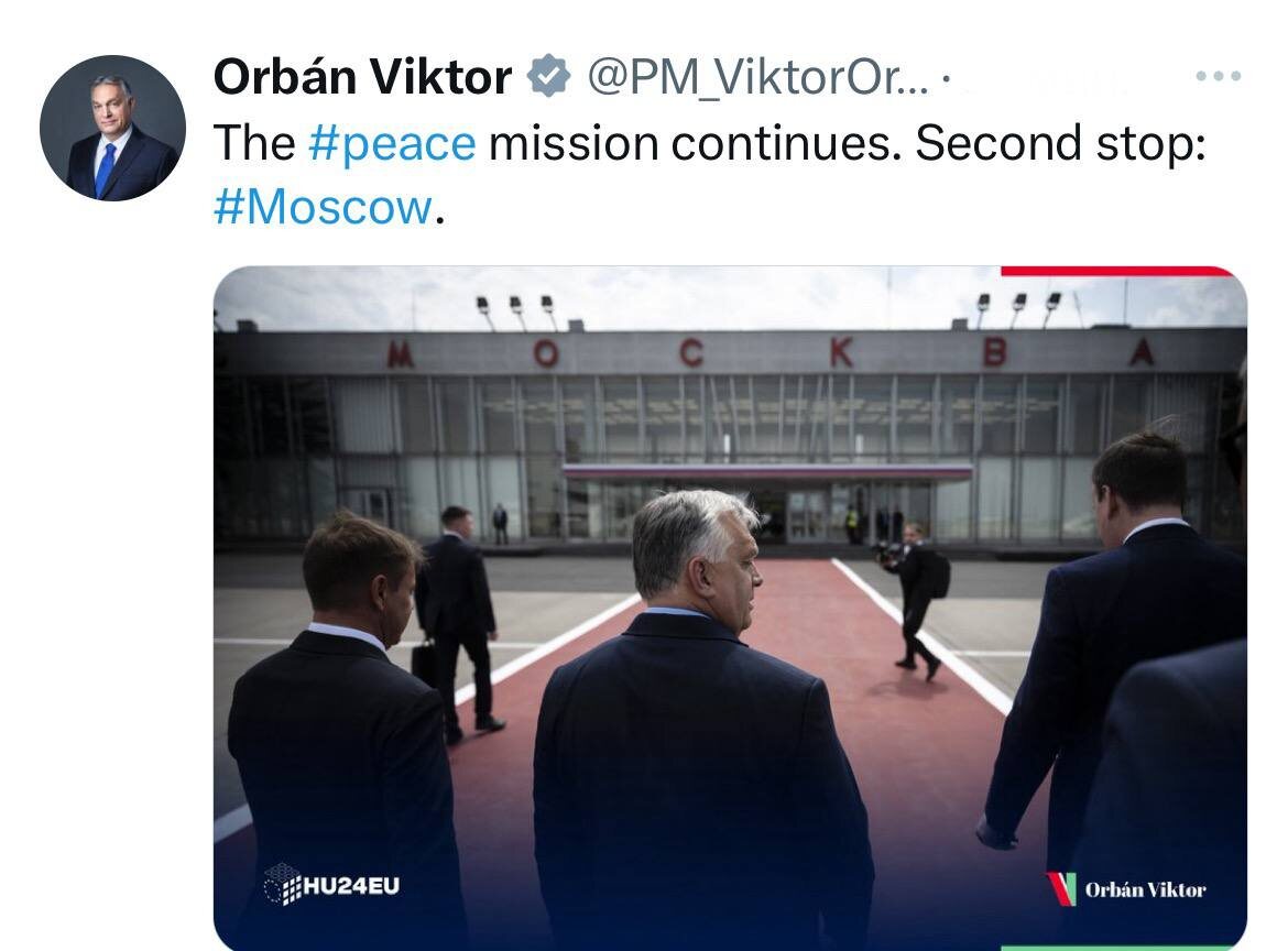 Венгерский премьер Виктор Орбан прибыл в Москву и встретился с Путиным. По словам Пескова об этом визите стало известно только позавчера. Цель поездки Орбана озвучил его пресс-секретарь: премьер отправился в Москву в рамках своей «миротворческой миссии», сразу же после разговора с Зеленским в Киеве, которого Орбан призывал подумать о мирных переговорах с Россией. Надо сказать, что вся эта европейская шушера и так ненавидит Орбана, а тут просто вышла из себя. Потомок эсесовцев, председатель комитета по иностранным делам Бундестага Майкл Рот едва сдержался от мата. «То, что Орбан постыдно злоупотребляет председательством в Совете ЕС и едет в Кремль без мандата, является скандалом. Он подрывает основные принципы внешней политики ЕС. Либо венгерское правительство уважает свою нынешнюю роль в ЕС, либо оно должно уйти с поста председателя», - заявил нацист. Его поддержал глава Евросовета Шарль Мишель «У ротационного председательства в Евросоюзе нет мандата на взаимодействие с Россией от имен
