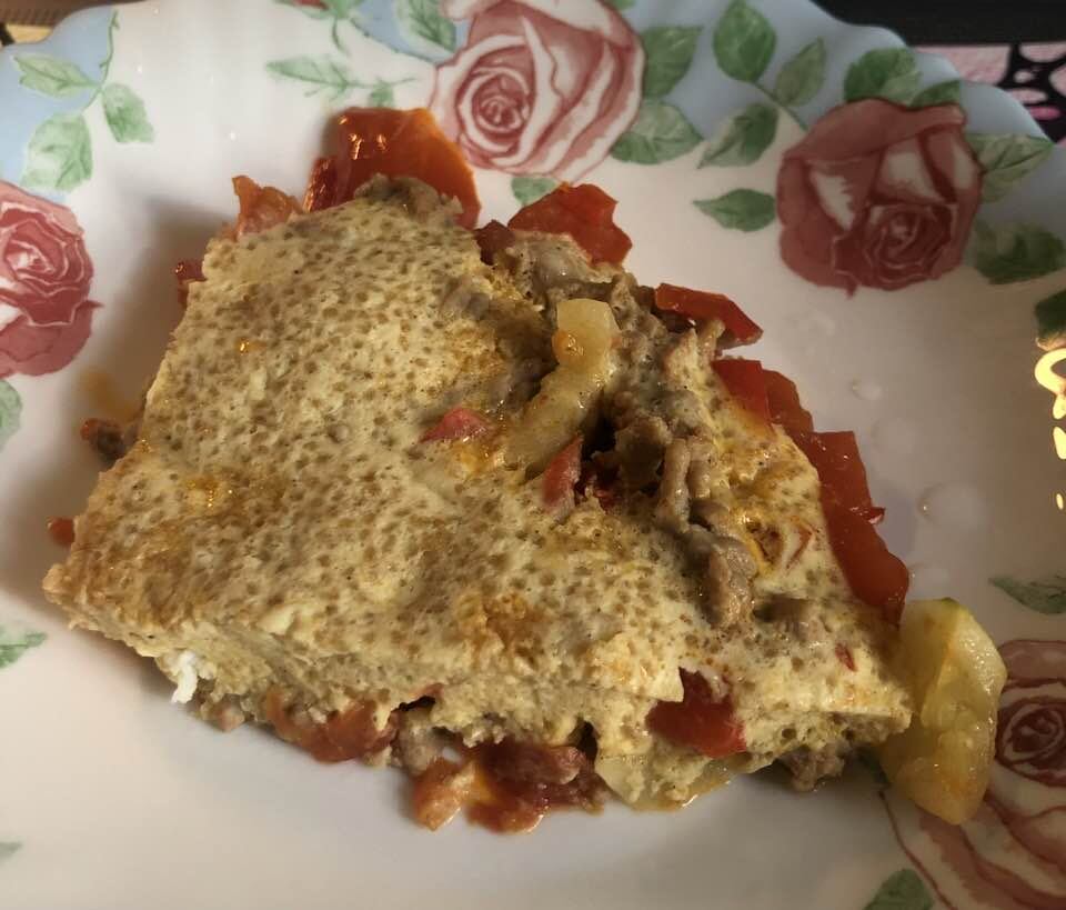 Делюсь новым, изобретенным мной, омлетом. Делюсь и думаю - может я не писатель, а омлетист и мне надо быть не членом союза писателей, а членом Клуба любителей омлетов? Хотя, какой я член союза, меня же оттуда попёрли, как только сильно заболела, а союз из русского, коим был почти 80 лет, стал украинским… Наверное, рожей своей цыганско-татарской не вышла или болеть не стоило… Как думаете? Такова наша действительность… Но по странному стечению обстоятельств писать не пересталось. А вам, друзья, мой новый рецепт: 1 небольшая луковица, 1 небольшой сладкий перец, 2 небольших помидора. Нашинковать, как нравится и потушить на оливковом масле. После добавить нарезанный, небольшой цукини и 100 гр сырого, индюшиного фарша, продолжая тушить под крышкой. Можно вместо фарша отварные кусочки индюшки или курочки. Короче, что Бог послал, то и кладём. Этим временем сделать яично-творожную смесь: 2 яйца, 1 ст.л творога, 1 ст.л киноа ( продаётся в интернет магазинах или магазинах для веганов ... для