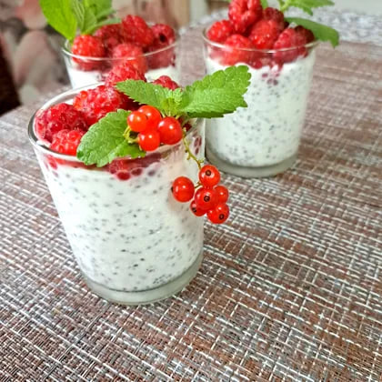 Семена чиа смешиваются с растительным молоком и оставляются на несколько часов или на ночь в холодильнике, чтобы семена набухли и образовали густую массу. Перед подачей добавляются фрукты или ягоды сверху, а также сладкий сироп или мед для придания сладости.