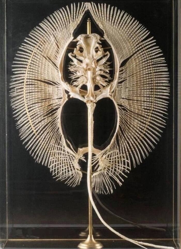 Перед вами скат. Точнее то, что от него осталось. В отличие от большинства рыб, скаты практически не используют свой хвост для передвижения, возлагая эту задачу на чрезмерно разросшиеся грудные плавники (вот эти вот «широкие крылья»).