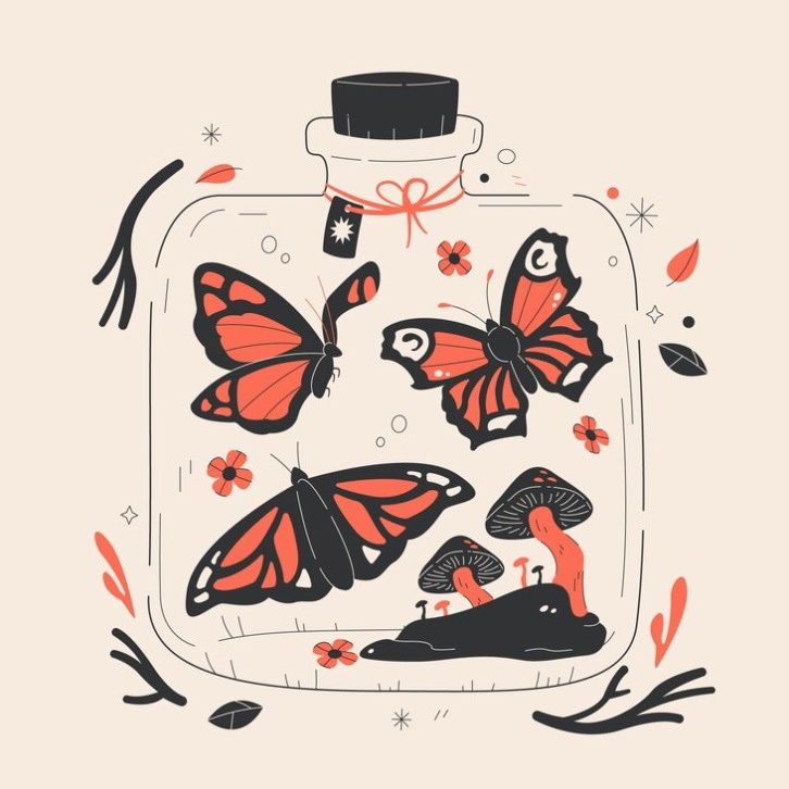 На траве, недалеко от дорожки, подложив под себя куртку-ветровку, сидела девочка лет тринадцати. Немного полненькая, одетая в лёгкие штаны с узором в цветочек и синюю футболку без рисунка, она рассматривала что-то у себя на коленях. Потом чуть подвинулась и взяла литровую банку стоящую рядом. Там, под чистым стеклом, порхали пять запертых бабочек. Две из них уселись на обломок веточки, положенный на дно, три других пытались вылететь наружу. Но пластиковая крышка с дырочками не давала им этого сделать.