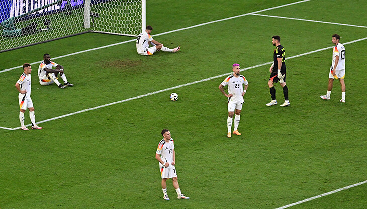 Так себе серия. Четвертьфинал домашнего Евро – не очень приятный итог для сборной Германии. После победы на ЧМ-2014, где немцы разбили Бразилию (7:1) и дожали Аргентину в финале, у них уже серия грустных турниров. ● На Евро-2016 чемпионский статус еще ощущался. В группе даже не пропустили, взяли солидные семь очков и первое место, в плей-офф убрали словаков и протиснулись через итальянцев (и серию пенальти из 20 ударов со множеством незабитых). Но в полуфинале нарвались на хозяев-французов – Антуан Гризманн был в топ-форме и оформил дубль. ● Чемпионат мира в России – сплошное разочарование. Казалось, что камбэк со шведами и грандиозный штрафной Тони Кросса на 90+5 – переломный момент, оставалось-то обыграть Корею. Но от корейцев получили два мяча в добавленное время и остались последними в группе. ● Евро-2020 тоже не удался. Чтобы пролезть в плей-офф, спасались от Венгрии в концовке (вы наверняка помните ту безумную развязку), вышли со второго места и сразу нарвались на прагматичную Ан
