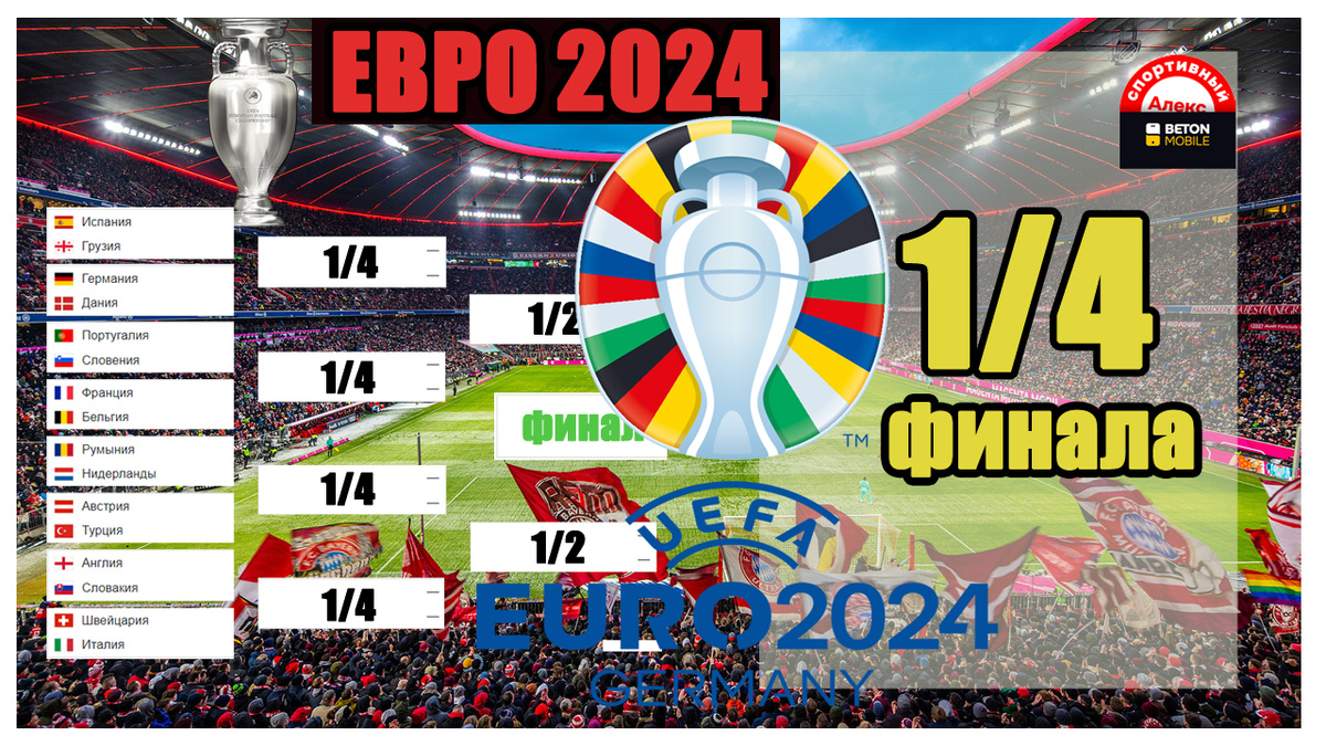 ЕВРО 2024. Кто вышел в 1/2? Схема плей-офф. Результаты, Расписание.