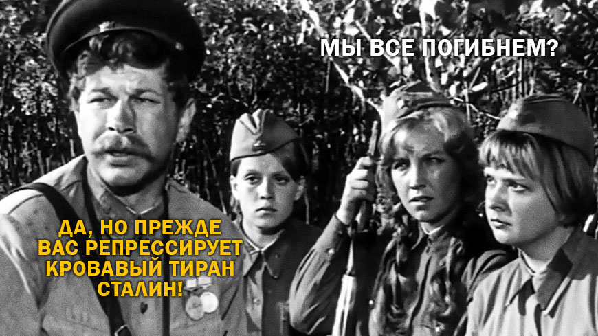 Покажу это на примере уже переснятого фильма "А зори здесь тихие", где в сюжет добавили сталинские репрессии, которым подверглись главные героини. Какого-то из девушек раскулачили, кто-то чудом спася из лап НКВД и т.д.