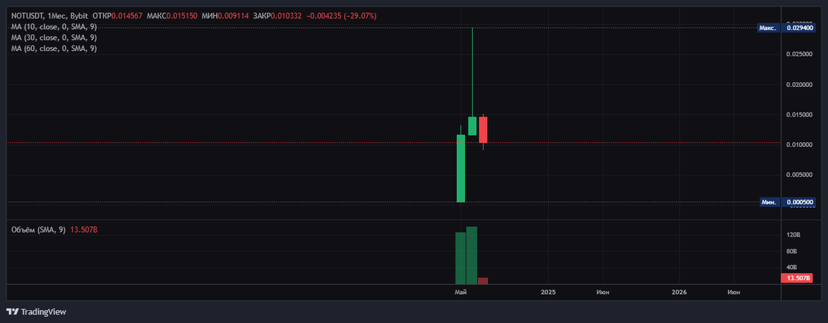 В конце мая - начале июня мы наблюдали стремительный рост Not до отметки 0.029. Казалось бы, что могло пойти не так? Все ждали дальнейшего роста токена. Но по прошествии нескольких дней, начиная с 3 июня notcoin пошел на спад и на текущий момент он упал до отметки 0.01. С чем связано такое падение? Первая и основная причина - это падение битка. Он тянет за собой вниз альткоины и мемкоины. В свою очередь биткоин упал с отметки 71000 $ до 53000 $ Из источника РБК известно, что падает биткоин, как и остальная криптовалюта в связи с началом выплат клиентам криптобиржи-банкрота Mt. Gox: В ночь на 5 июля курсы биткоина и других крупнейших криптовалют упали после появления информации о начале выплаты клиентам обанкротившейся криптобиржи Mt. Gox на общую сумму около $9 млрд. Предполагается, что значительная часть монет может быть продана получателями на открытом рынке. Цена биткоина (BTC) в моменте упала ниже $54 тыс., это самое низкое значение курса с февраля 2024 года. Для примера приведен