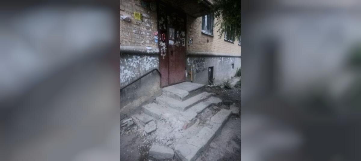 «Оступилась и рассекла лоб»: ужасающее состояние крыльца дома в Воронеже показали на фото