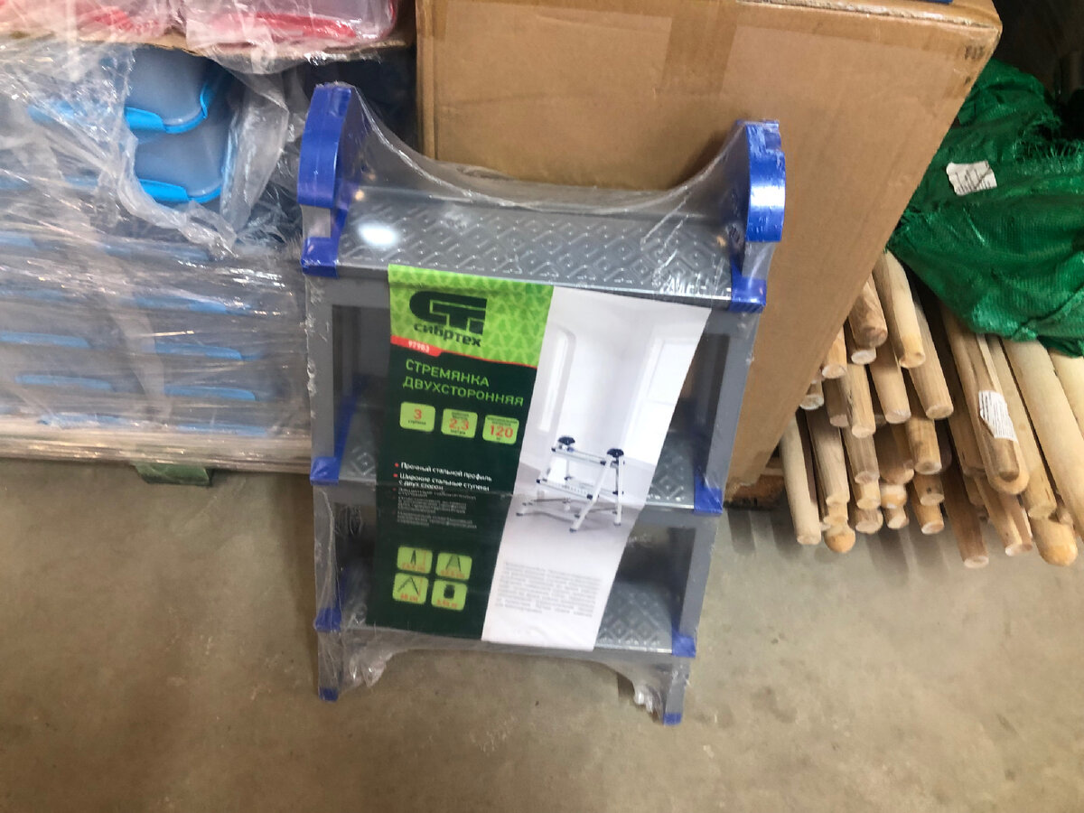 Начнём с металлических стремянок, которые снова появились в продаже. Эти стремянки двухсторонние и имеют три ступени. Высота рабочей платформы при использовании составляет 230 см, а максимальная нагрузка - 120 кг. Они изготовлены из прочного стального профиля с широкими стальными ступенями с двух сторон. Произведены они в России, что добавляет уверенности в качестве. Невероятно полезный предмет для дома или дачи, особенно если вам нужно что-то достать с высоты. Стоимость такой стремянки составляет 1180 рублей.