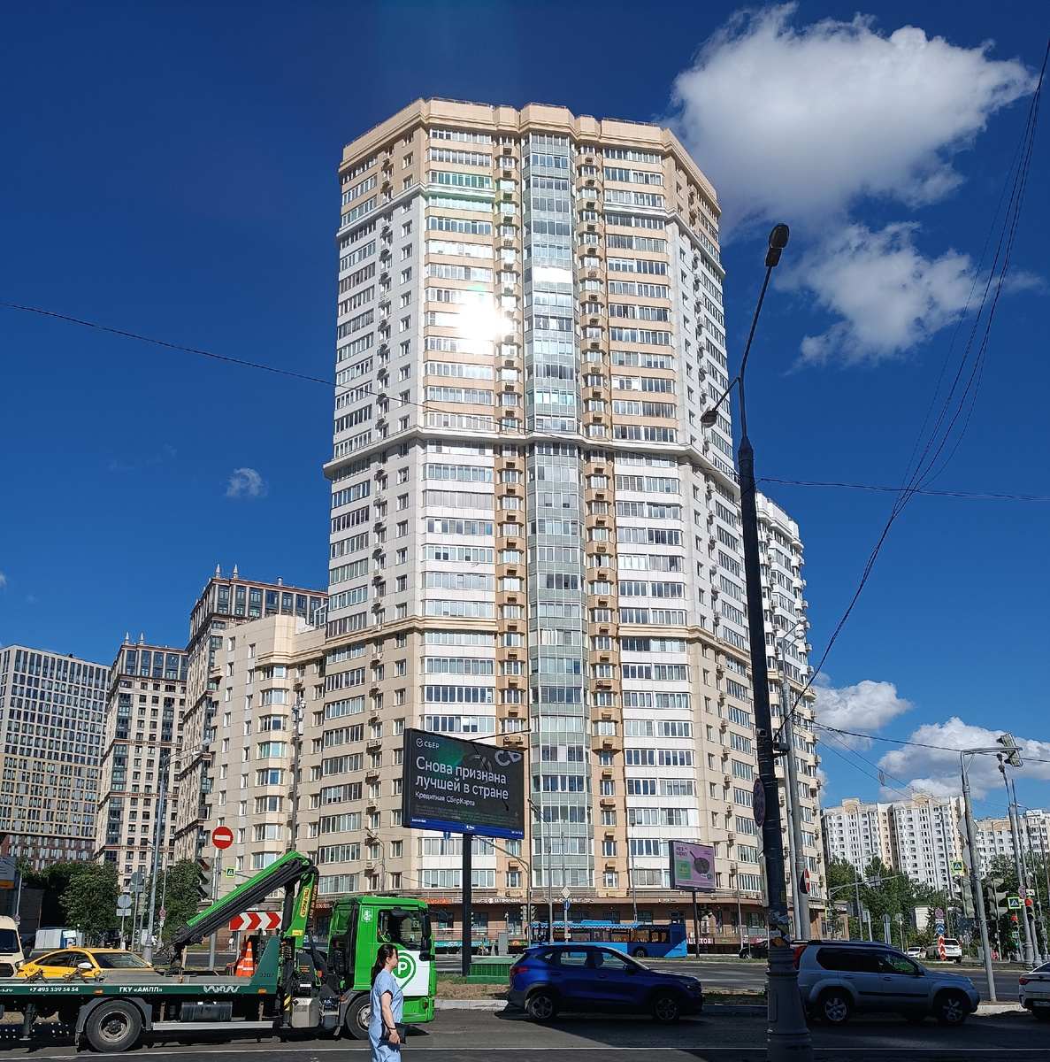 6 июля 2024 года Здравствуйте, друзья! Сегодня, субботним вечером, мы с моей подругой Леной решили совершить набег на один из магазинов Second hand, известной сети "Столичный гардероб". Обычно я эти магазины обхожу стороной, совсем не потому, что мне сама идея не нравится, а потому что я в них как-то теряюсь. Но ведь магазины эти не пустуют, народу в них всегда довольно много, вот мне и стало интересно, как там можно что-то найти, подходящее по размеру и фасону. Вообще-то магазинов этой сети в Москве много, мы договорились встретиться у метро "Молодёжная", тем более, что я очень давно не была в этом районе и хотелось посмотреть как он теперь выглядит. Конечно, я его не узнала. Вместо снесённых ещё до реновации пятиэтажек кругом высятся многоэтажные дома. Кинотеатр "Брест" в прошлом году снесли и пока ничего на этом месте не построили и ТЦ недалеко от метро образовалось немало. Наш путь лежал в один из ТЦ, под названием "Трамплин". У стен его расположились забавные скульптуры. Барон Мюн