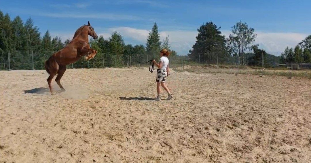 Чаще всего люди либо мечтают о том, чтобы лошадь вставала на свечу, либо ругают за воспитание такой команды. У нас же, повторимся, выбора не было.