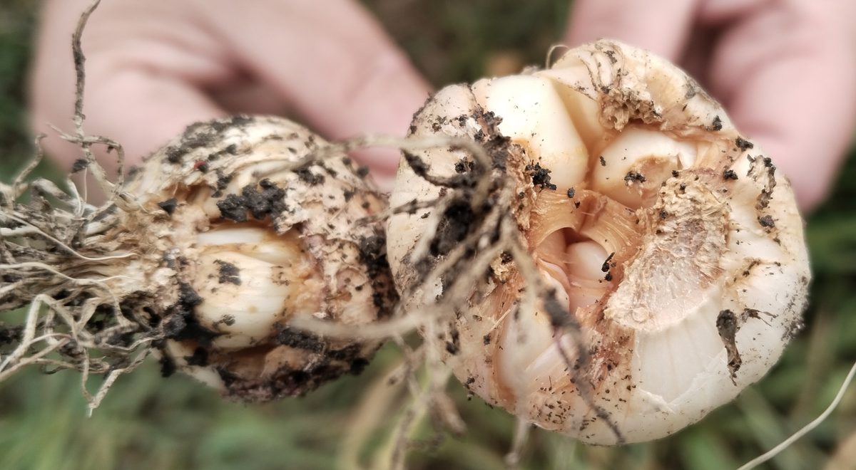 Осмотрите свои растения чеснока на предмет усыхания трех нижних листьев. Выкопайте такие растения. И поделитесь в комментариях что обнаружили.