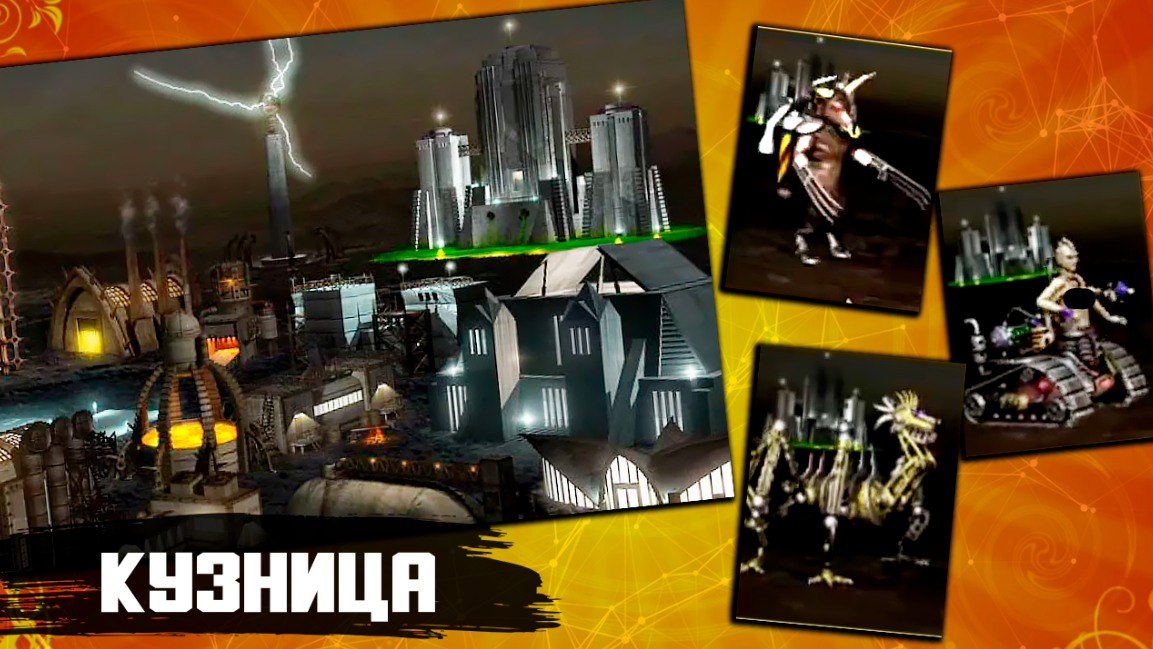 Что касается существ, то в городе "Кузница" должны были присутствовать существа из других фракций, но с какими-либо технологическими дополнениями. То есть, по сути это были уже киборги.