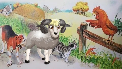 Жили были старик со старухой. У них был баран Вот старик говорит старухе. - Давай, старуха, зарежем барана и продадим его - Ну, что-ж, зарежь! Баран это услышал, вылез из-под сарая и убежал. Идет Баран по дороге, а навстречу ему бездомная собака. Сидит и плачет. - Что, собака, плачешь? - спросил Баран - Как мне не плакать. - ответила собака - Жила я у своего охотника, загоняла ему добычу, а как только постарела, он меня выгнал со двора. - Не плачь - говорит Баран - меня тоже из дома выгнали. Я иду в город и хочу быть музыкантом. Пойдешь со мной? - Пойду - ответила Собака - Я буду петь и на балалайке играть, а ты будешь петь и на ложках стучать. Собака согласилась и пошли они вдвоем Вскоре они повстречали бездомного кота. Кот сидел и плакал - Что, кот, плачешь? - спросил Баран - Как мне не плакать - ответил кот Жил я у своей хозяйки. Ловил мышей. А как только постарел, хозяйка меня стала бить и ругать. А потом и вовсе из дома выгнала. - Не плачь - говорит Баран - пойдем лучше с нами. С