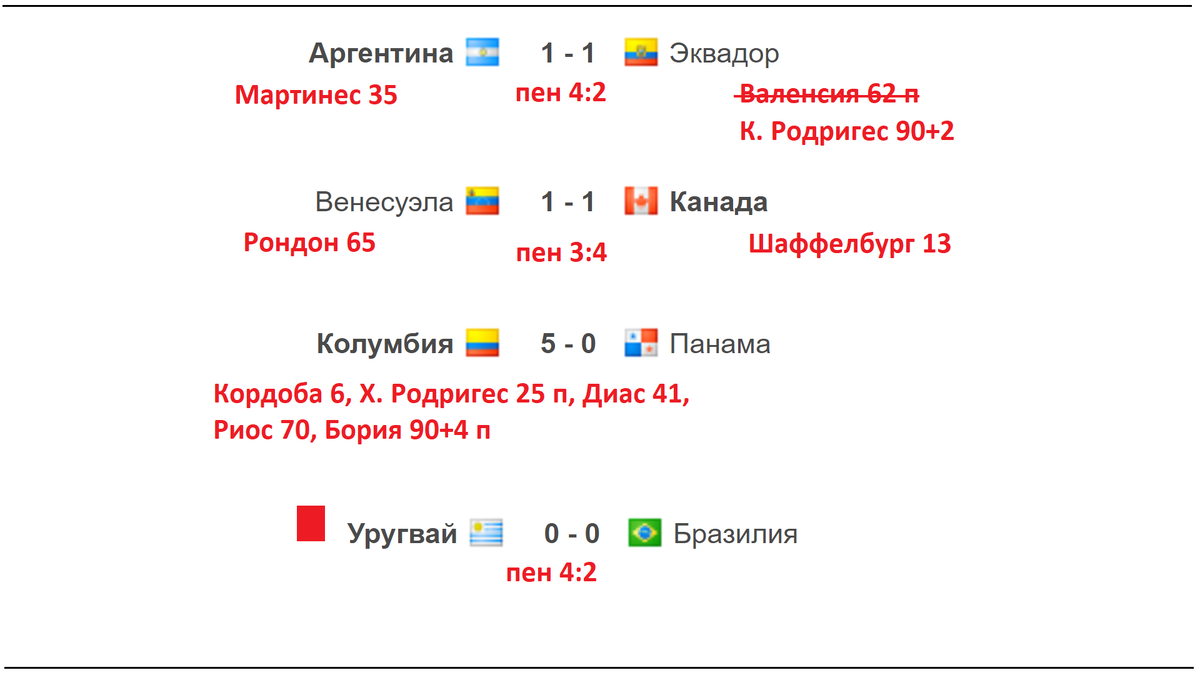 Кубок Америки по футболу 2024. Кто прошёл в 1/2? Результаты. Расписание.