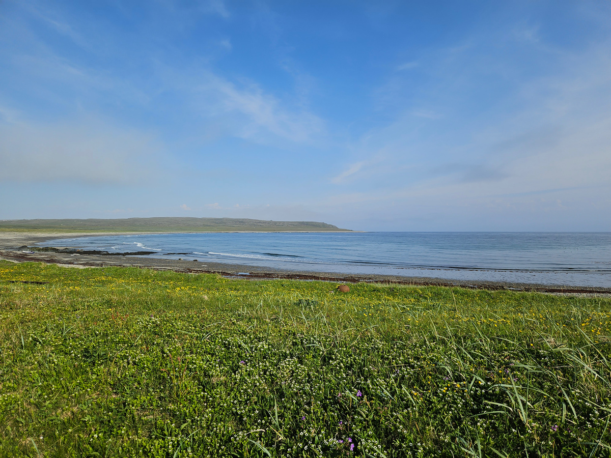 Пока я спала в палатке, слышала токование бекаса, но потом его уже не нашла. Если вечером погода была не очень, холодно и пасмурно, то с утра нас порадовало солнце. И комары почти пропали - вечером они сильно докучали, я даже ужинала в палатке. Прогулялись к морю - обнаружили мёртвого тупика. Не таким я хотела его найти :( Вот по этой ссылке можете посмотреть фото черепа, которое я опубликовала на inaturalist - не уверена, что такое можно загружать в Дзен. На пляже бегали галстучники - уже привычны на всём побережье, снимаю их через раз. А рядом с галстучником бродил одинокий чернозобик. Уже при просмотре фото дома в Петербурге нашла на одном из снимков рога северного оленя. Мы там в тундре неподалёку обнаружили ещё и ногу с шерстью чуть выше копыта - возможно, это рога той же особи. Или рога вынесло морем. Помёт северного оленя я здесь находила повсеместно, хотя сами животные нам не встречались. Беглый поиск в интернете показал, что на Рыбачьем не должно быть дикой популяции. Возможно