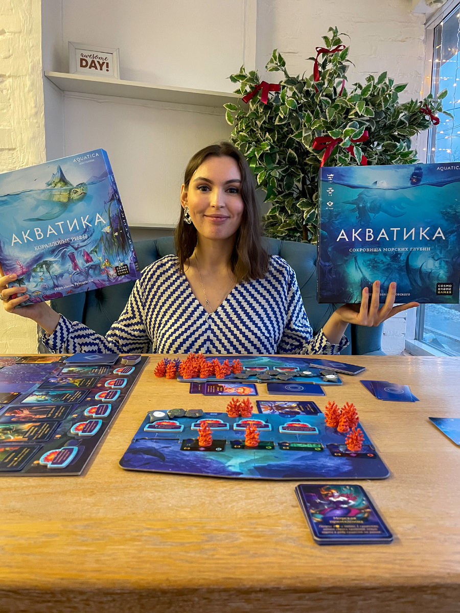 Говорят, сегодня последний день предзаказа второго дополнения к «Акватике», а я вам ещё ничего не рассказала про «Коралловые рифы», хотя вчера сыграла в них второй раз — непорядок;) Если вы ничего не знаете про саму «Акватику», я писала большой пост про игру здесь: https://dzen.ru/a/ZPjnEnDwXka0MpIG?feed_exp=ordinary_feed&from=channel&integration=zen_app_ios&place=export&secdata=CLqA%2F%2BKmMSABUA9qAQGQAQA%3D&clid=2314040&rid=611851715.1152.1720341960696.49019&referrer_clid=2314040&, а про первое дополнение, «Ледяные воды», писала здесь: https://dzen.ru/a/ZQYVZsSrWAOaR1wQ?feed_exp=ordinary_feed&from=channel&integration=zen_app_ios&place=export&secdata=CIG4x%2F6pMSABUA9qAQGQAQA%3D&clid=2314040&rid=611851715.1152.1720341960696.49019&referrer_clid=2314040& Поэтому давайте условимся, что в этой статье я напишу лишь про второй доп — и мы выведем за скобки информацию про правила и суть базы и первого допа (если захотите, о них можно будет почитать в отдельных статьях). Итак, давайте коротко
