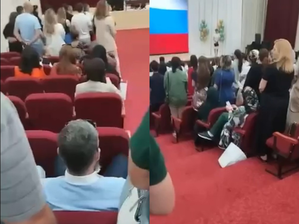 В Нальчике на выпускном девятиклассников разразился скандал из-за поведения родителей. В СМИ попало видео с взрослыми, которые не встали во время исполнения гимна России.