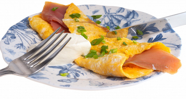 Омлет: водка, лосось и сибулет