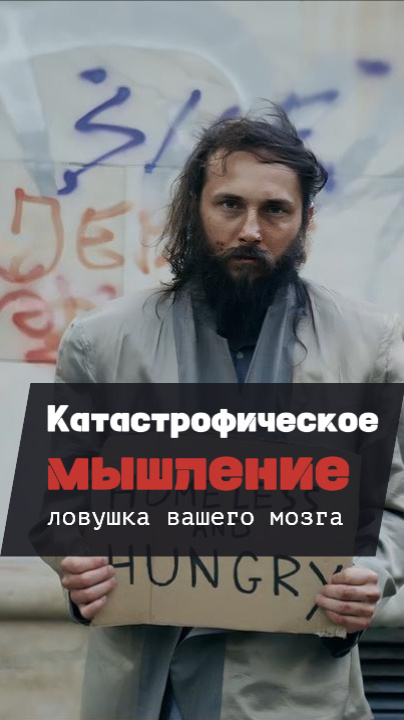Катастрофическое мышление, или катастрофизация, – это когда ты воспринимаешь любые ситуации как возможные катастрофы и преувеличиваешь их последствия. Ваш мозг попадает в ловушку, где он генерирует множество негативных сценариев. Негативные мысли усиливают эмоции до такой степени, что представленная «катастрофа» ☄️ заполняет весь ваш ум! Катастрофические мысли могут касаться разных тем в вашей жизни: окружения, людей, здоровья. Например, человек, боящийся летать на самолёте, может представлять себе ужасную авиакатастрофу, а тот, кто тревожится о своём здоровье, может воспринимать обычную головную боль как признак серьёзного заболевания. 📎 Признавать, что в жизни могут происходить негативные события, – это нормально и иногда полезно. Это ваш инстинкт самосохранения, который помогает вам избежать опасности. Например, если вы находитесь у обрыва, то вы сразу представляете, что можете упасть, это заставляет вас отойти от края как можно дальше. Проблема заключается в том, что ваши негатив